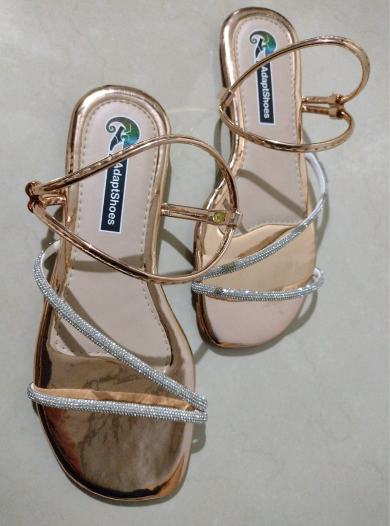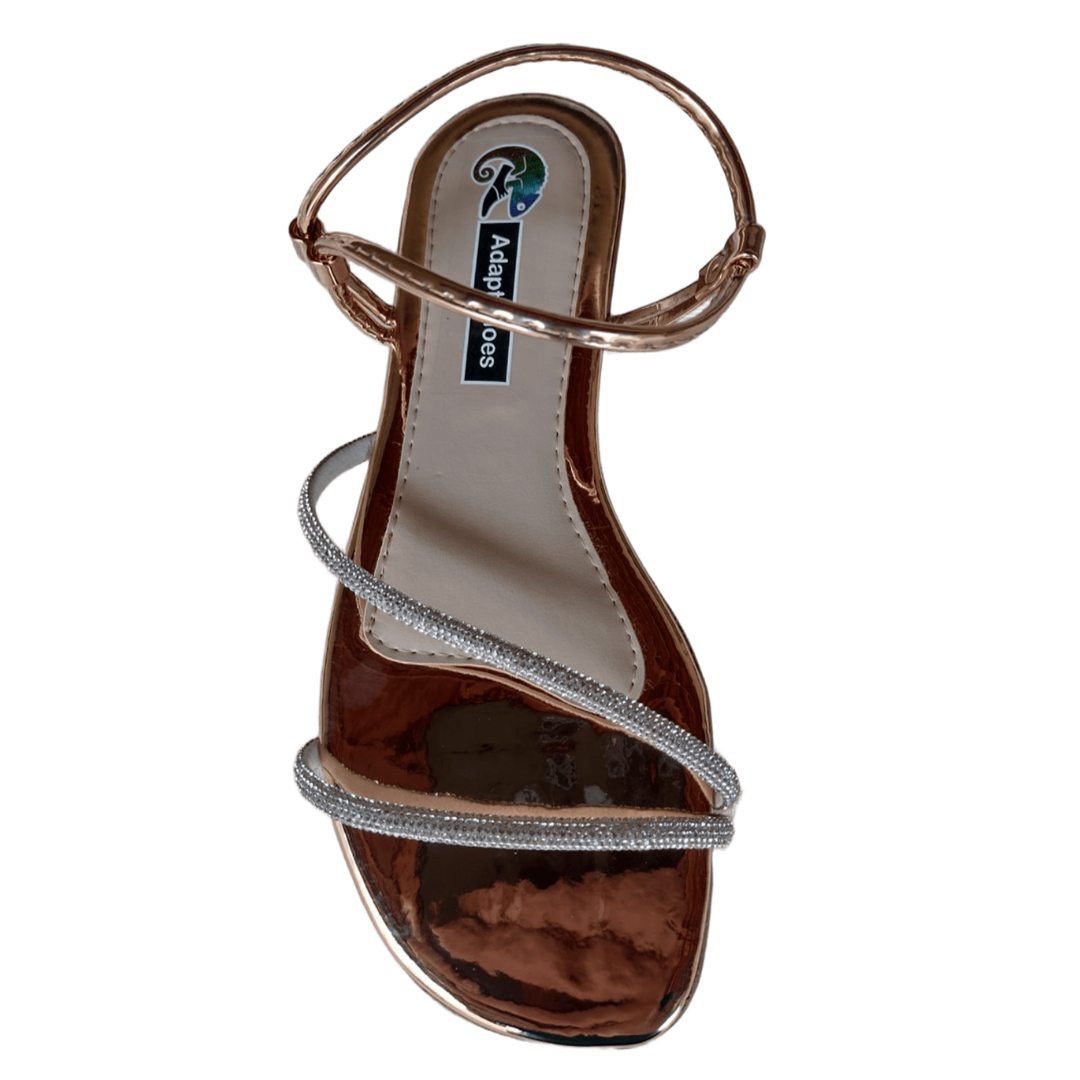 Sandália Rasteira Feminina de tiras com Strass Cobre